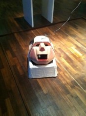 Hopf's masks give "the brain" another face resembling a stone totem staring back at the viewer devoid of invitation or mimetic expression. In this work, the artist casts history as shadow faces made from trash convening in a present moment that cannot have meaning until it is dislodged from the different forms of determinism that each object here relates about its own time.
