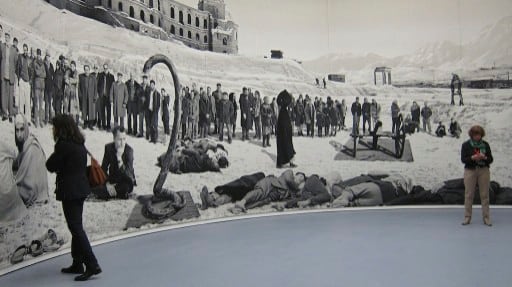 In the end, Mroué's theatrics encircle the constant dissipation of information (including disinformation) that is left in the wake of war. This Documenta installation critiques the government and the inactive policy of the international community that has wasted thousands in the last year; but it also critiques the fidelity of the recorded image as news or evidence witnessed from outside the war zone.