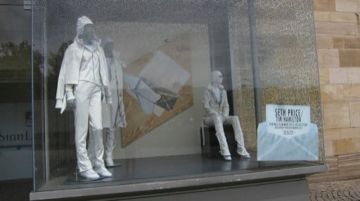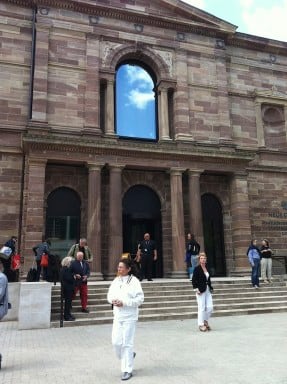 As the breeze passed through the crowd, floating in their hair and filling their open blazers, the outdoor climate that was transfused into the museum seemed to be a metaphor for the comings and goings of international avant-gardes that have over the years been exhibited in the Fridericianum. Gander's piece also filled the Kunsthalle with the cold breeze of history. It carried with it an unconscious desire still palpable in this advanced EU nation to replace the dread of the past by restoring culture in the present.