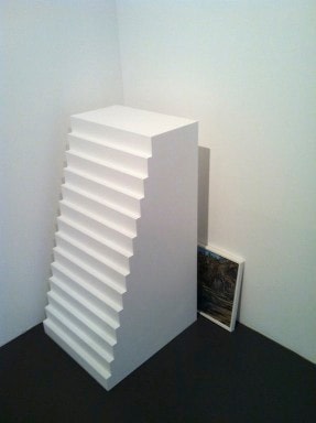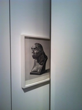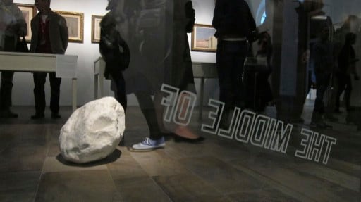 Lawrence Weiner's text-on-glass The Middle of the Middle of the Middle of points to an uncertain core of principles and perceptions that are as much a figment of reality as they were during the Bactrian Princess' time. Our humanity has always been expressed by our fascination with objects, the installation suggests, or more specifically our ability to construct objects out of beliefs. Today, as cultures of consumers, we still embed knowledge into our objects, no matter how dumb. Superstitions have not gone away; they have been replaced by new mediums masking old religions and revealing emergent beliefs that require new placeholders. This was the timeline the rotunda-brain suggested for contemporary art as a conceptual repository for the modern and premodern worlds that came before it.