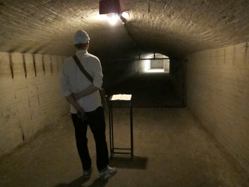 Some of this Documenta's most intriguing works dealt with human development in the most remote and prehistoric sense. Art super-duo Jennifer Allora & Guillermo Cazadilla gave one of the strongest examples of this. Their contribution is a video entitled Raptor’s Rapture, installed in Kassel's World War II bomb shelter. This bunker made for a haunting black box with its arched, brickwork ceilings and drafty cellar air. The space holds within it an ominous history. Visitors must wear a hardhat and after descending into the caves, it is difficult not to imagine the horror of being trapped in the bunker during the aerial raids that flattened Kassel.