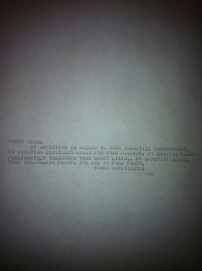 DS: I was sitting in the background of the office for the whole day (from 10:00am to 8:00pm) and writing down what the visitors said to Beuys and what he himself answered. Most of the visitors didn’t notice me.