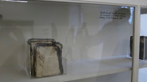 It may be that the oppressive heat in the room is an oblique comment on global warming - a direct result of our global car culture. Surely, the petrol industry provides one link between the emergent history of globalization and the weaponization of the planet. Is this what links the copper alloy bullet eaten by (car) battery acid to the ancient artifact mercilessly dulled by the eons of erosion that have passed since some desperate caveman flayed his dinner with this rock? I don’t know. But the heat trapped within this greenhouse on the edge of the Baroque Karlsaue Park did not become any less unbearably hot as I stood next to my fellow Europeans peering into the truncated history Durham offered up.