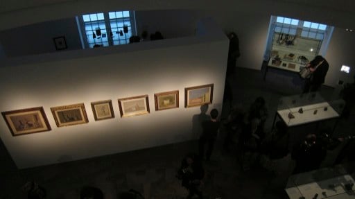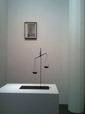 This soft touch around the edges can be found in Giorgio Morandi's still life on display in the rotunda. He, too, transmits the unease enclosing everyday life, its objects and its modest pleasures, just as his artistic forebears did in Flanders and Spain before Chardin mastered this tradition in France. With Morandi, we are in the company of artists in their sixteenth-, seventeenth- and eighteenth-century studios that came before him and it is as though he is painting for the Ancien Régime or some other time before him. Yet, we cannot forget that these humble containers, painted again and again, are also deflecting the hysteria of a reactionary culture that nearly destroyed European civilization, as conflict erased whole parts of the material culture that preceded the wars of the twentieth-century. Seen in the vitrine, each object is removed from the formalism of genre and from the bubble of the artist's studio by the expressed exile each object occupies. Literalness in Morandi's work is lost in the double image of the artist's own retreat into a separate world expressed by these modest things.