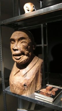 Hopf's masks give "the brain" another face resembling a stone totem staring back at the viewer devoid of invitation or mimetic expression. In this work, the artist casts history as shadow faces made from trash convening in a present moment that cannot have meaning until it is dislodged from the different forms of determinism that each object here relates about its own time.