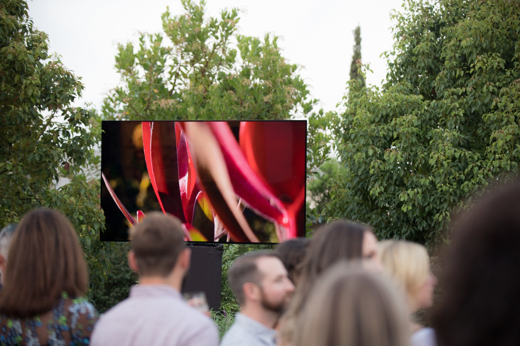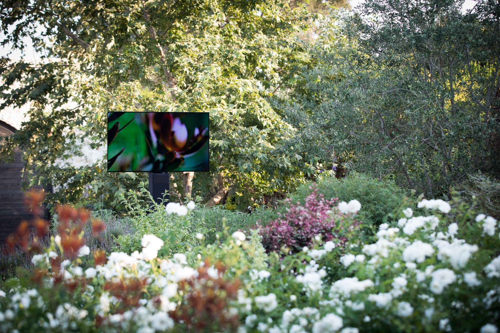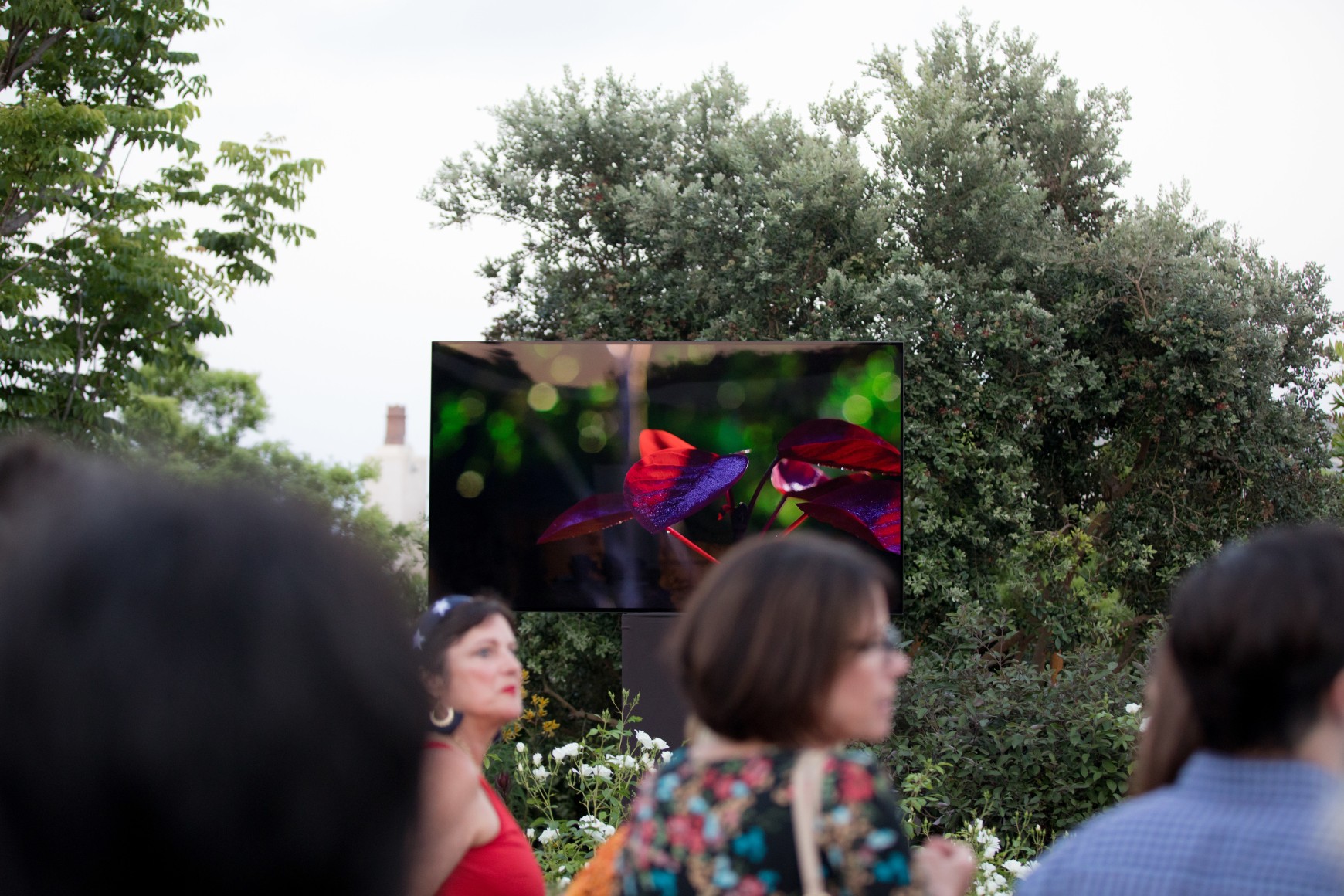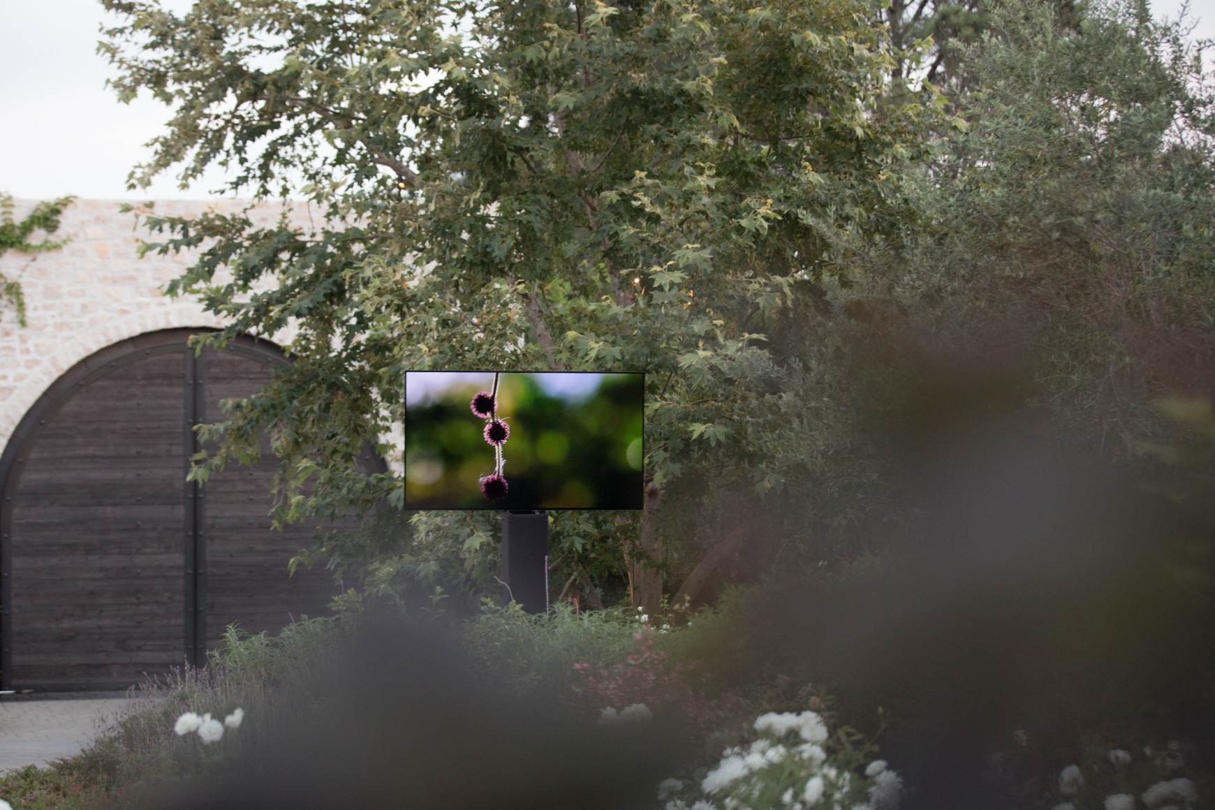 Finally, all this visual language was transported into a 6 channel audio and visual installation in the garden, showing the choreographic and sensual movements of Chris’s hands while exploring his garden. The six screens, as voices in a choir, sing together for creating an orchestral feeling in space: a polyphonic, polychromatic experience amongst the plants in the peaceful Haudenschilds' garden.