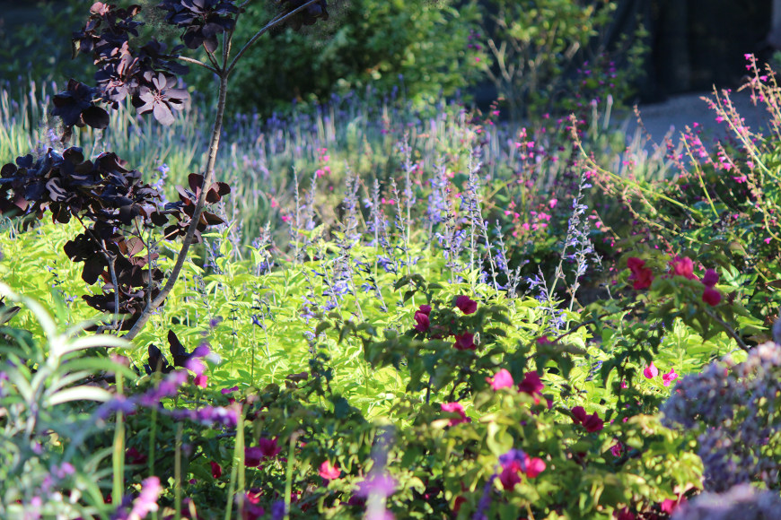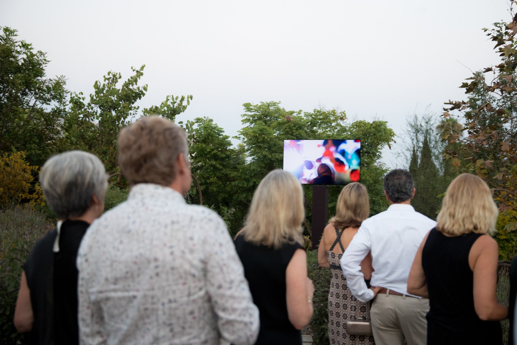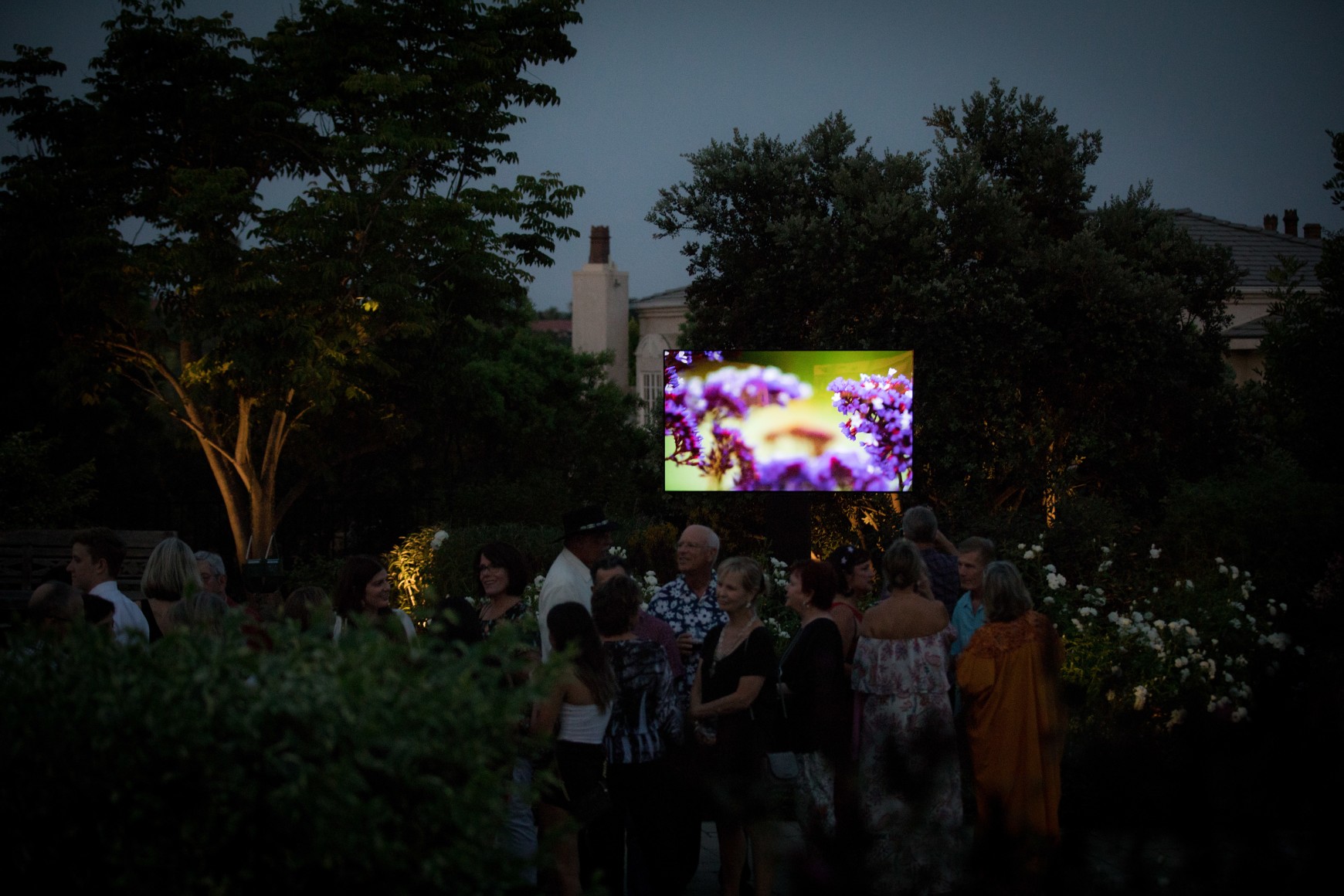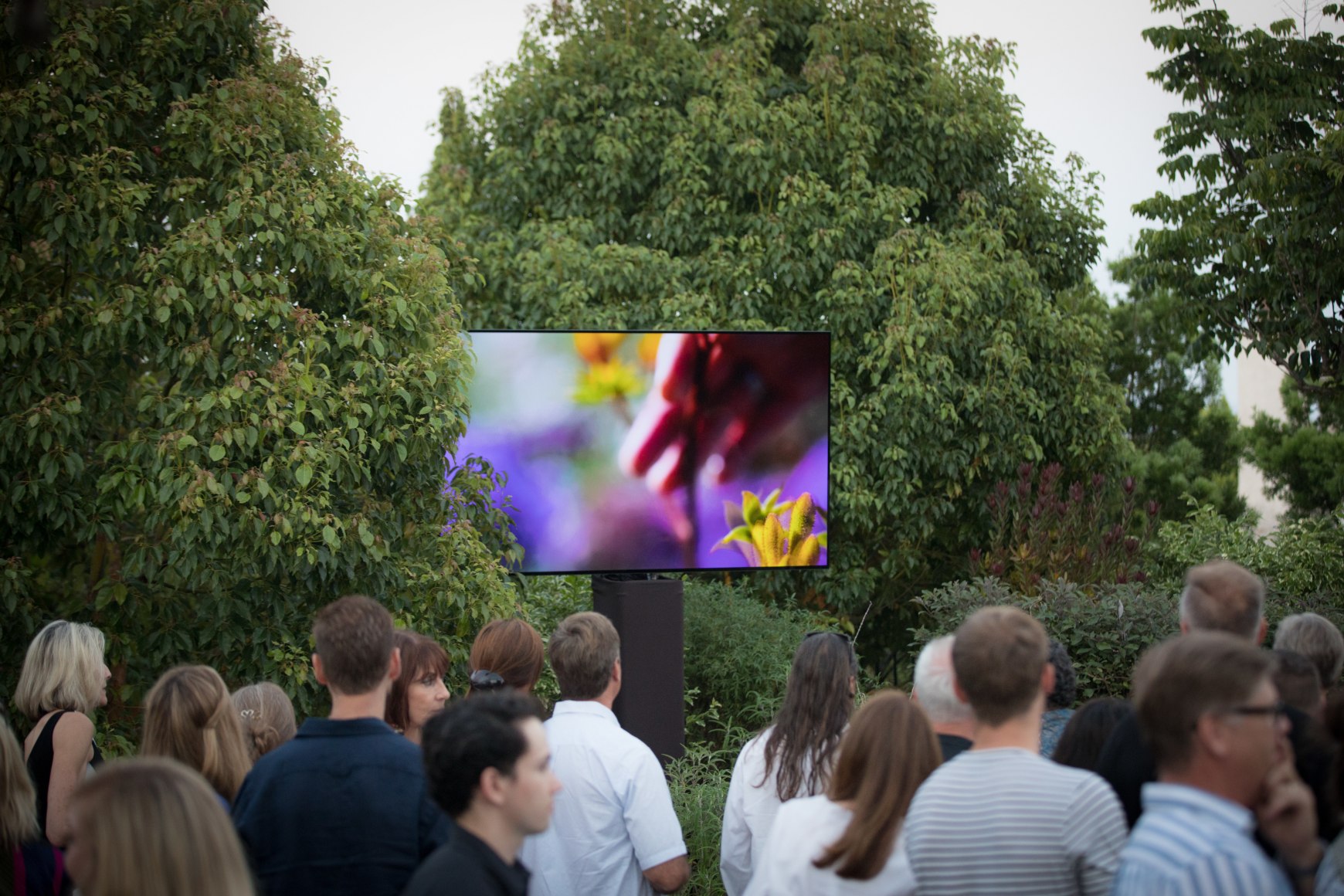 Finally, all this visual language was transported into a 6 channel audio and visual installation in the garden, showing the choreographic and sensual movements of Chris’s hands while exploring his garden. The six screens, as voices in a choir, sing together for creating an orchestral feeling in space: a polyphonic, polychromatic experience amongst the plants in the peaceful Haudenschilds' garden.