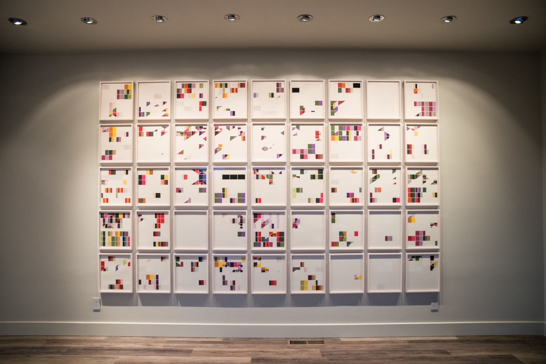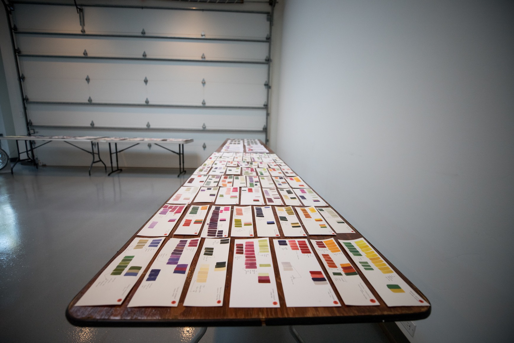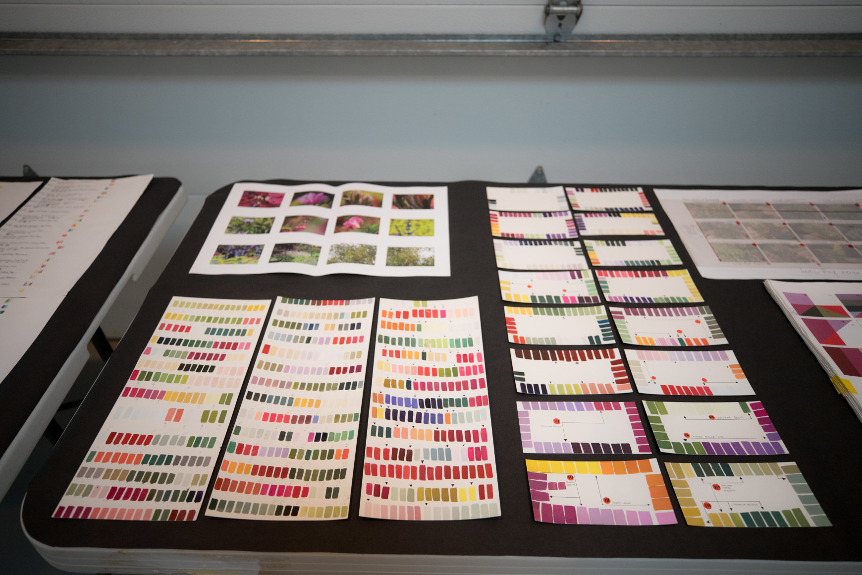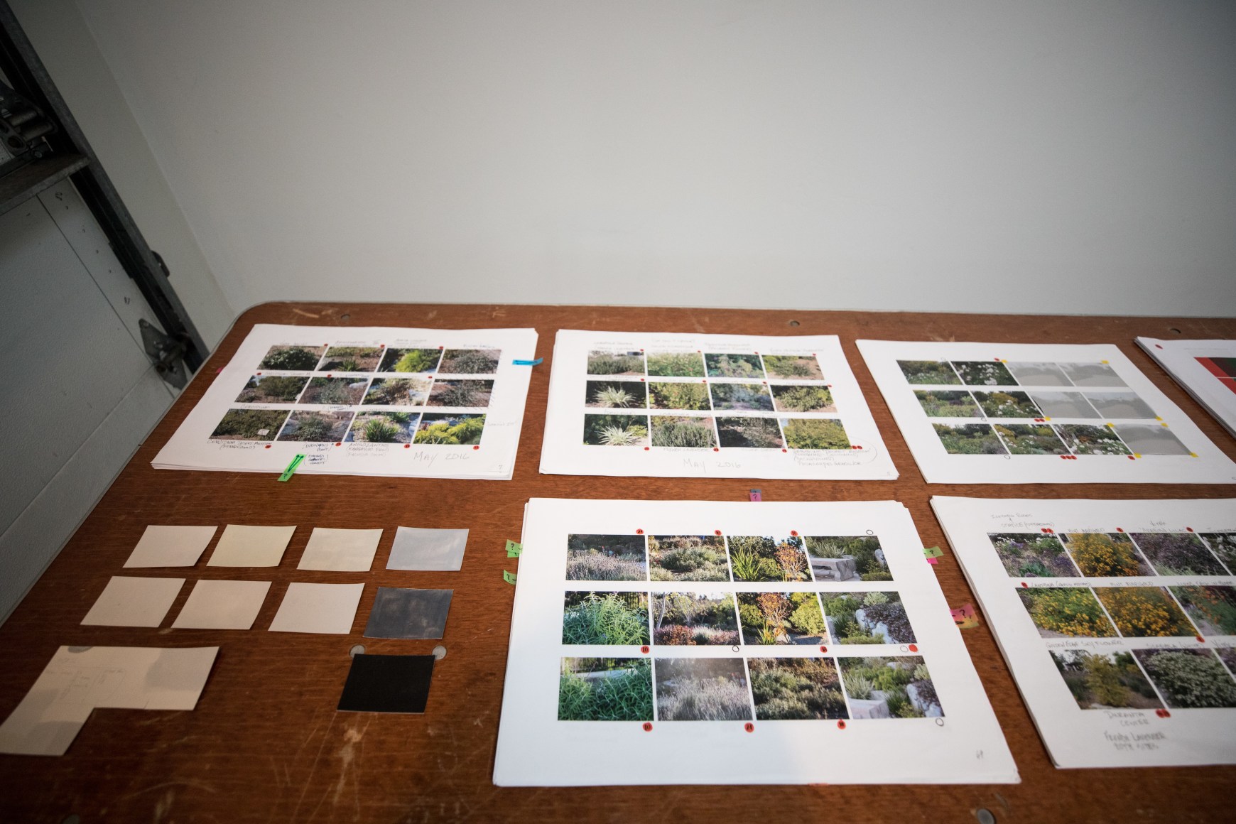 The project was established through continuous dialogues and visits to the garden in La Jolla. Using landscape artist Chris Shea’s log as a departing point for creating a music score and later his incredible photographic work on the different species included in the garden, a color abstraction code was created to interpret this two year long catalogue of the garden into a geometric structure of colors and voids, representing the changing cycles of the flowers through the seasons, in a drawing installation.