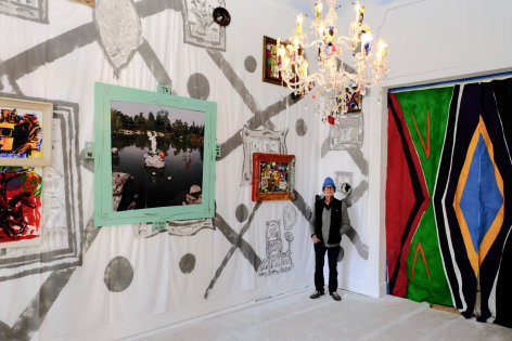 The installation “Flight of Fancy” stems from this very seminal happenstance. It has flowed through many installations over since -- the painting of Holly Solomon’s library, hanging some of her painting collection over the original, French decorative cloth wall covering in 1984.