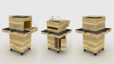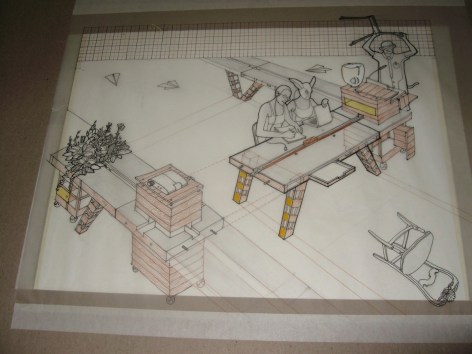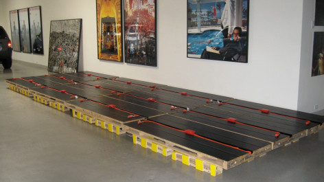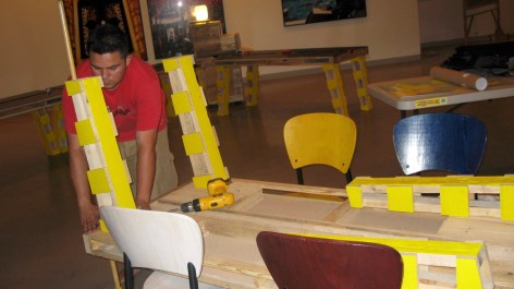 First prototype of a larger Project [IMPort/EXPort] on modernist urbanism. Waste from international exchange is taken and then redesigned, transformed and re exported back with other use and other value. In this case a Conversation Table of modular design is created, built with pallets and a material derived from the rubber of used tires, both of these in reference to context of exchange between Mexico, USA and Asia. The Table is not a unique prototype there should be other tables in different places with other conversations in relation to uniqueness of their environs, seeing that the modulation is not solely of the object but of the conversations, so there is an exchange of them [conversations + conversationist] an Import and an Export between the different contexts.