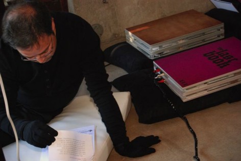 Hence the lineage of The Last Book, not repeating closely either of the first two hG, Spare Parts productions, but congealing more exactly into a one of a kind convocation, alternately or simultaneously a performance, a reading, a controlled party, a reunion, an architectural tour, and a product launch.