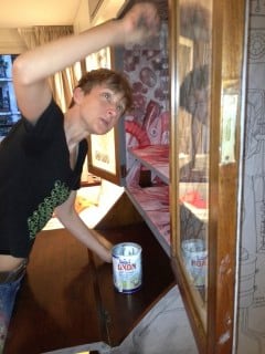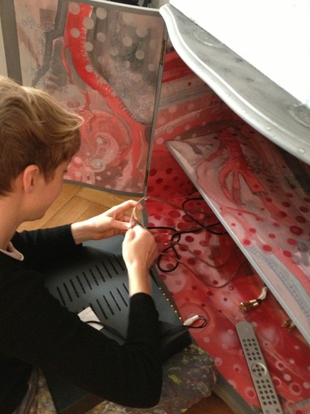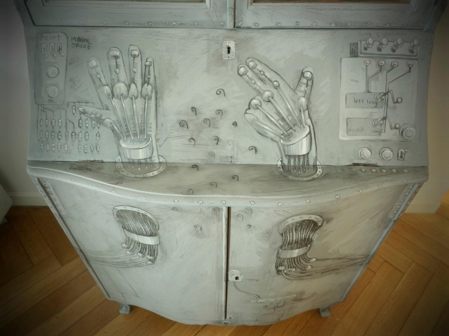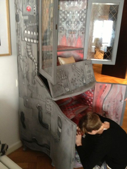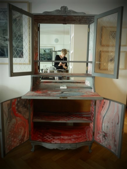 In October 2012, Argentine artist Cecile Perret was invited by the haudenschildGarage to do an intervention on an antique cabinet in Buenos Aires, Argentina.