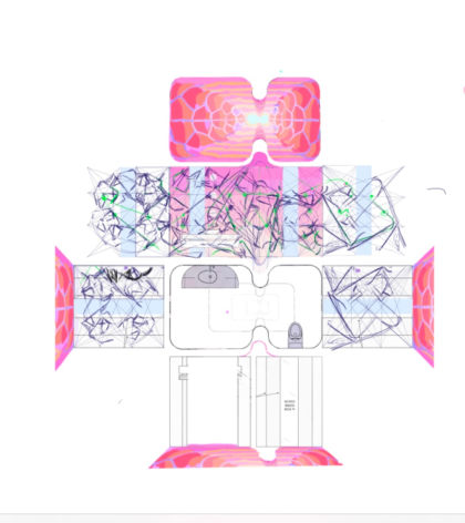 Shaped like an organ, the unique quality of the room containing Without Action Fractured Faces emerges through undulating curves that soften the sense of perspective. Having no corners to anchor to, an elegant ethereal presence permeates the space. Though it is not large, it feels expansive. It is adjacent to the main entrance of the home, yet once inside (with a closed and locked door) it is sensorially dislocated from the external. As a place of respite from the social self, one can look inward and cycle through several subtle states of being before returning to the outside world. There is an element of deconstruction and reconstruction in the space, like being dissolved before being made whole.