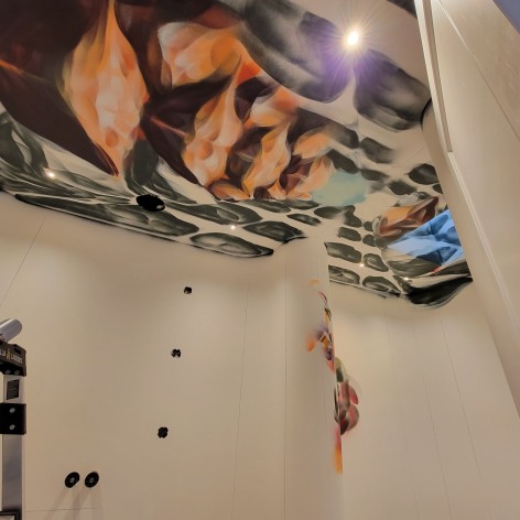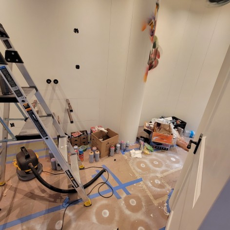In Summer of 2022, Eloisa Haudenschild invited me to create a site-specific artwork in a residential powder room. At the time I was working on several large-scale public and private projects. Shifting to such an intimate environment was an intriguing opportunity to explore an idea through an immersive installation. My initial proposal focused on the perception of time and how the depth of our experiences impact the way that we perceive the physical world as well as the construction of self and personality. Through several months drafting many iterations—working virtually along with visits to the site as it was being constructed—an understanding of the room developed. My interests gravitated towards the intersections of functional, social, and psychological forces.