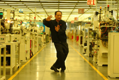 The installation at OCMA (6/30 - 9/2/07) is anchored by the video Whose Utopia?, an eerily beautiful portrait of the factory and of the workers’ daily lives, fantasies, and aspirations. Scenes from a typical workday are interspersed with performances by a peacock dancer, a ballerina dressed as an angel, an electric guitar player, and a break dancer. The final segment of the video—My Future is Not a Dream—is named after the rock band that formed as part of the project. A statement that can be read as both a positive statement of the fairytale possibilities of the future or as a hard dose of reality, the sentiment captures the dual nature of China’s current economic boom.