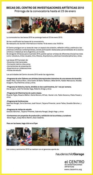 The haudenschildGarage supported el Centro de Investigaciones Artísticas' 2010 Art and Theory courses and Seminar program.