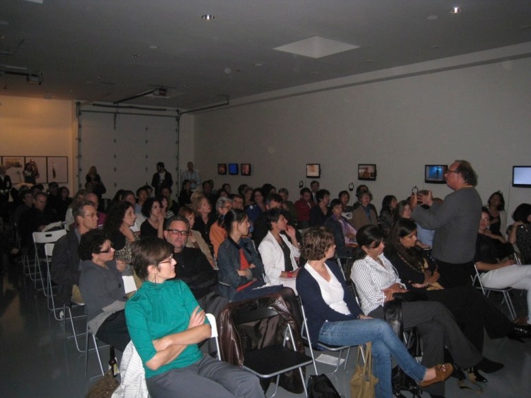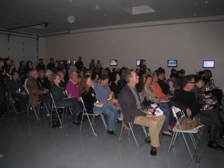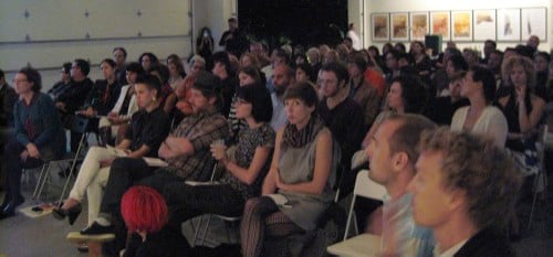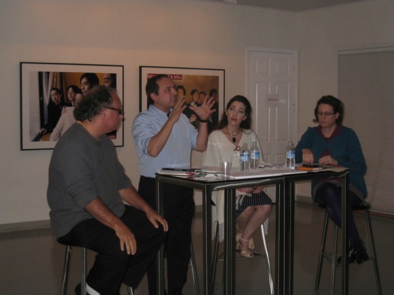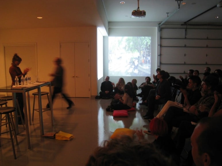 On October 15, 2009, the haudenschildGarage invited Washington Cucurto and Maria Gomez of the Argentine literary collective Eloisa Cartonera for a Garage Talk. They were in conversation with Steve Fagin, Eloisa Haudenschild, Teddy Cruz (architect, estudio teddy cruz), Juli Carson (Director, UCI Art Gallery) Jennifer Flores-Sternad (art critic and curator), and Monica Jovanovich. Steve Fagin and Juli Carson were moderators and respondents. All of the October 15 participants were part of the November 2008 A Crime Has Many Stories traverse in Buenos Aires. At the Garage Talk, Cucurto read an excerpt from the hG commissioned short story El Hijo.