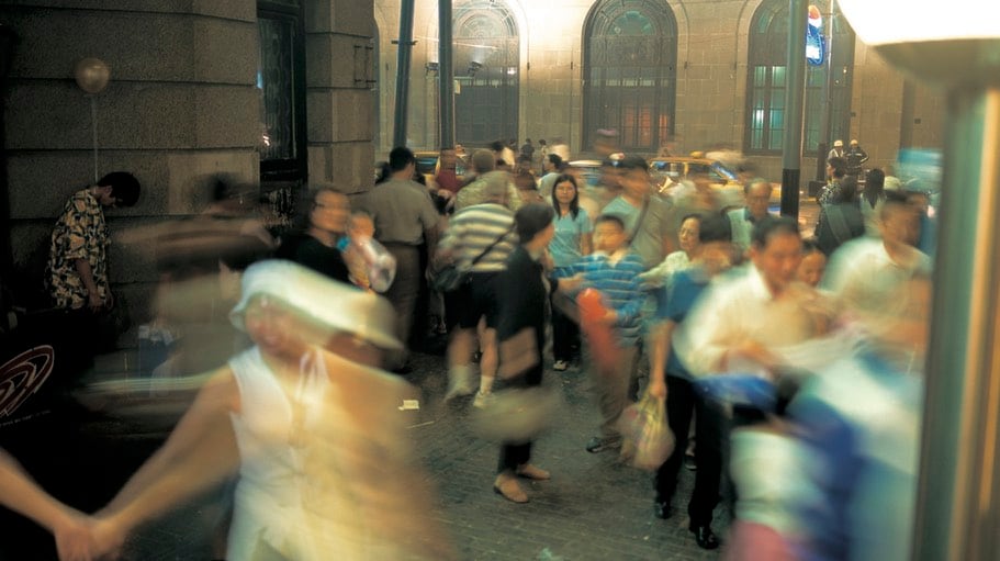 In their assuredly Chinese way - that is in the way that they reflect twenty-first century urban life - the Shanghai images are resoundingly pop. They celebration city life: the crush of the crowds reflect the huge population shift from rural areas to the glittering, high-rise Shanghai center, and they hustle to the unheard sounds of the ever present hip hop beat. Parodies of sophisticated advertising and new dilm noir about. And, finally, the uncertainties of life in the immensely contradictory new China are felt as unsettling backdrop throughout the work. In contrast to the Los Angeles images, the Shanghai work is an Eastern, but also knowingly Western, genre sprung from one of the world's oldest cultures. It is work that now participates in a worldwide dialog, which has been at plat in Communist China for a very brief period.
