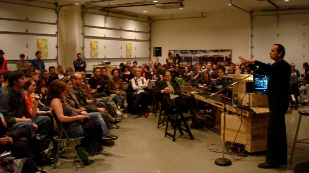 The haudenschildGarage invited Ala Plastica's Silvina Babich + Alejandro Meitin (La Plata, Argentina) and Urban Think Tank's Alfredo Brillembourg + Hubert Klumpner (Caracas, Venezuela) to be in conversation in a presentation moderated by Ariana Hernandez. This event was organized by Steve Fagin, Eloisa Haudenschild, Teddy Cruz, Grant Kester, and Jennifer Flores-Sternad.