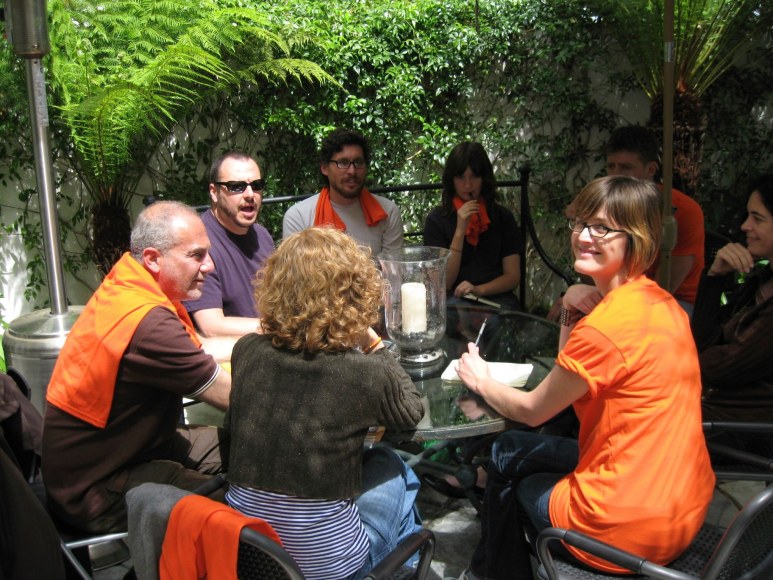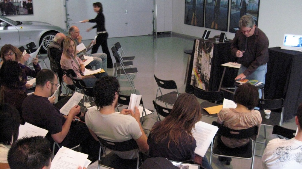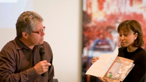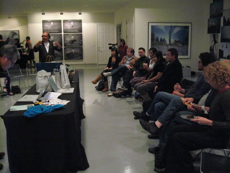 On May 12 after the groups' activities in San Diego, the participants reconvened at the Garage and discussed, debated, and shared their experiences with Jeff Kelley moderating the evening. Dolissa Medina was the videographer and Marcos Llanos and Monica Jovanovich photographed the events. Present from MOCA were Aandrea Stang and Zachary Kaplan.