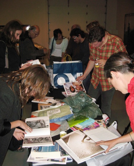 The next night we met for the final meeting for each group to report on their experiences and to deliver our documentation which, in this instance, was a pile of books and photographs. On the whole, the books suggested tended to cluster around issues of pollution, environmentalism, economic inequality, recycling and tires as a subject. There was several children’s picture books, and since no one had suggested art, there were no art books. No one had had a complete lack of cooperation, but some people got more engaged and some defensive when they felt challenged. We came to no conclusions about any of this, nor could we considering the number of variables for which there was no control. But we were pleased that we had kept the project simple and with the original idea of a service exchange involving some element of tension realized by all participants.