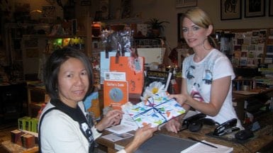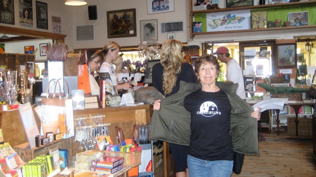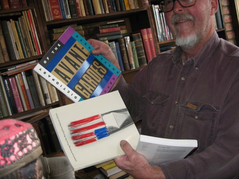 The group was enthusiastic about the project and quickly separated into couples to do the task during the day. The Rothenbergs went to Barnes and Noble, Borders, and the Carlsbad Public Library, Gail Schneider and David Matlin covered several used bookstores on Adams Avenue, but had to wait until Monday because the stores were closed on Sunday; Coryl and Sybil went to an upscale private bookstore in the Flower Hill Mall where the owner immediately identified the photograph as a piece of Allan Kaprow’s; Steve Fagin and Eloisa Haudenschild went to the more upscale chain Warwicks and the bookstore at the Contemporary Museum, and Steve used the computer to do an exploration of the service transformations in on-line book purchase; and Monica Jovanovich went to several chains. We all purchased books.