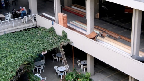 Curator Hou Hanru describes the IMÇ as, “a microcosmic condensation of the structure of Istanbul, a mega-city in permanent expansion and mutation,” indicative of the city’s “integration into the global economic system.” World Factory is an exhibition about working conditions. For all intents and purposes, the Istanbul Textile Traders’ Market (IMÇ) is a mix between open-air shopping mall and factory.