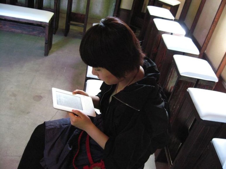 Experiment was present in the Last Book production, evidenced in part by the project’s ability to generate a fork in the road. Direction was established and planned, then reevaluated and changed just before performance time. In the publicized plan, the text was to have been read aloud in its entirety by Mian Mian. Language differences constituted more of a barrier than imagined, so the book’s three acts were read by three separate readers: Mian Mian first, followed by Monica Jovanovich, then finally a Kindle.