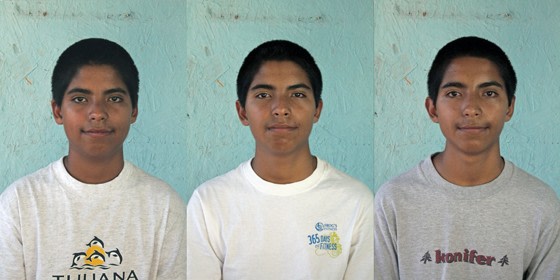 Gifted painters, outstanding students, and devoted offspring, the trillizos have together created a space where they complete each other in an uncanny way. Easy intimacy and companionship is a mark of the idiosyncratic experience of being, in some ways, one identity divided amongst three bodies, and they often speak of each other as “clones.” As Lorenzo and Leonel both explain, being a triplet is “like having two people that are the same as me.” As a result, they exhibit a thoughtful understanding of the harmonious means needed to reach consensus that is well beyond their years: “We make decisions with maturity and seriousness; we each give our opinions and analyze the question,” explains Luis when asked about how the triplets settle, always together, on all aspects of their lives and daily activities. These include painting collectively, finding and applying to grants to complete their education and finance clothing and food, winning special prices in art and academic achievements, playing sports, and helping their mother with household chores.