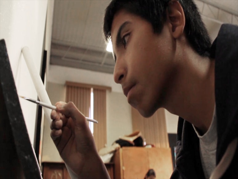 Taking this as a point of departure, Triples/Trillizos confronts dissimilarity rather than resemblance. The documentary starts with a mixed-media painting exercise based on their individual photographic studio portraits that immediately reveal what their behavior and unity mask—the triplet’s faces are surprisingly distinctive from each other even if their mannerisms, habits, and goals constantly restore sameness. The photographic portrait is a ground for independent painted explorations of imagery that represents each individual, not the triad. Lorenzo, Leonel, and Luis are skilled figurative painters, yet for them this is a double experiment: to confront their variances while at the same time move inwardly, separately, towards the manifestation of those aspects of their personalities that differentiate the one from the group, and by this point towards a more distinctive sense of self. With attention and sensitivity the documentary aims to give nuanced portraits of Lorenzo, Leonel, and Luis as they inhabit a shared role with grace and perseverance and gently negotiate a space for lives lived in parallel.